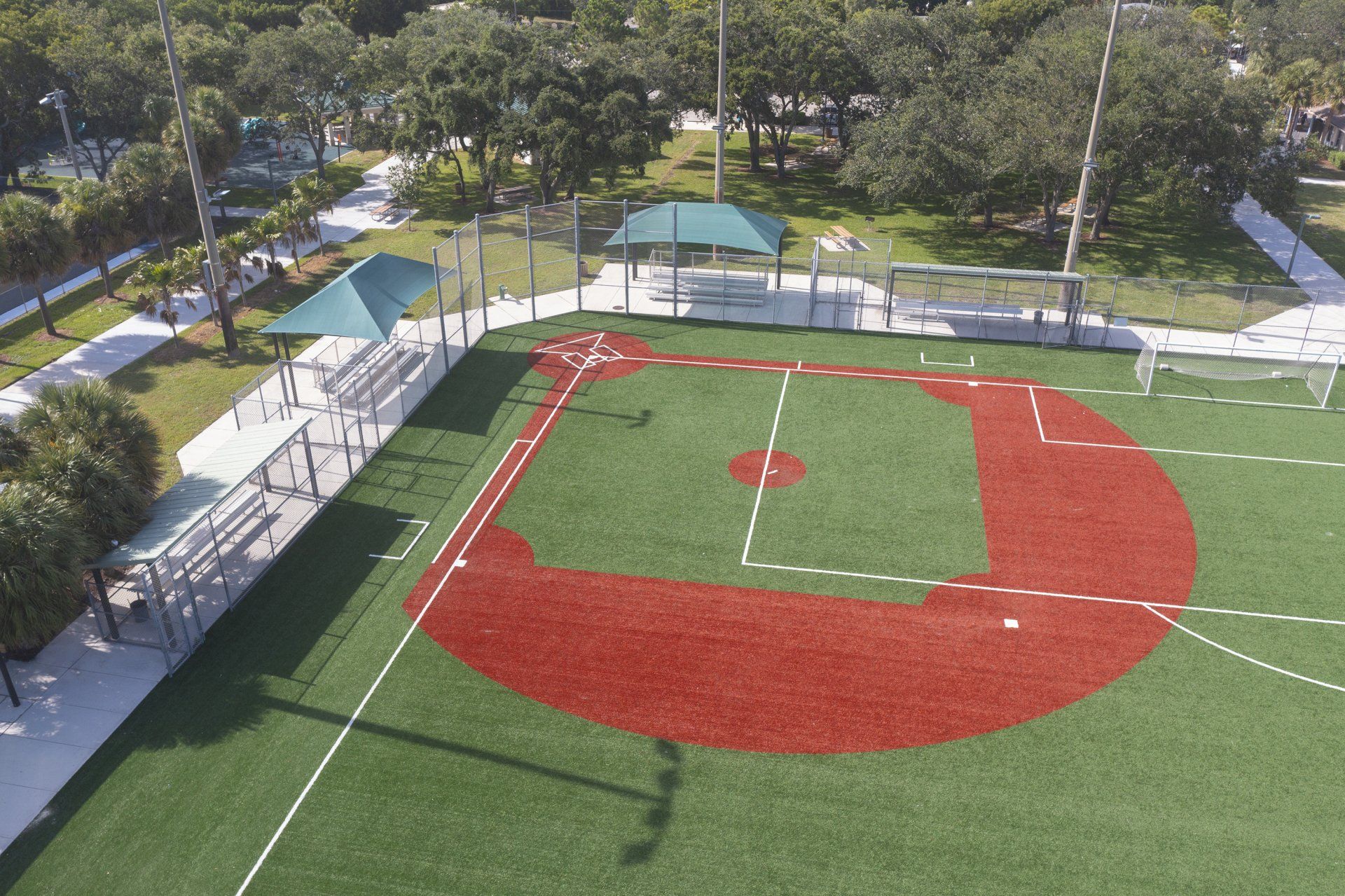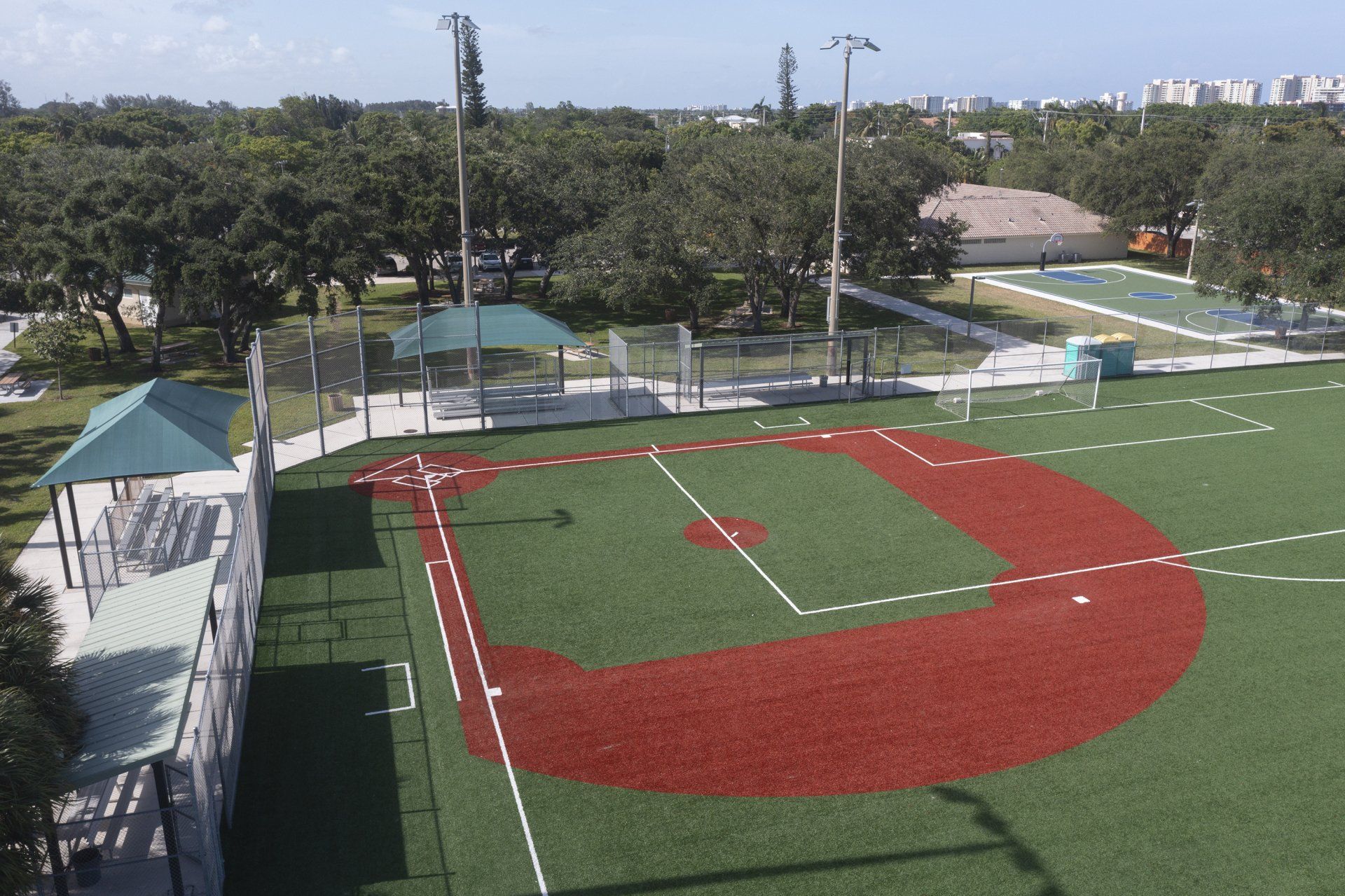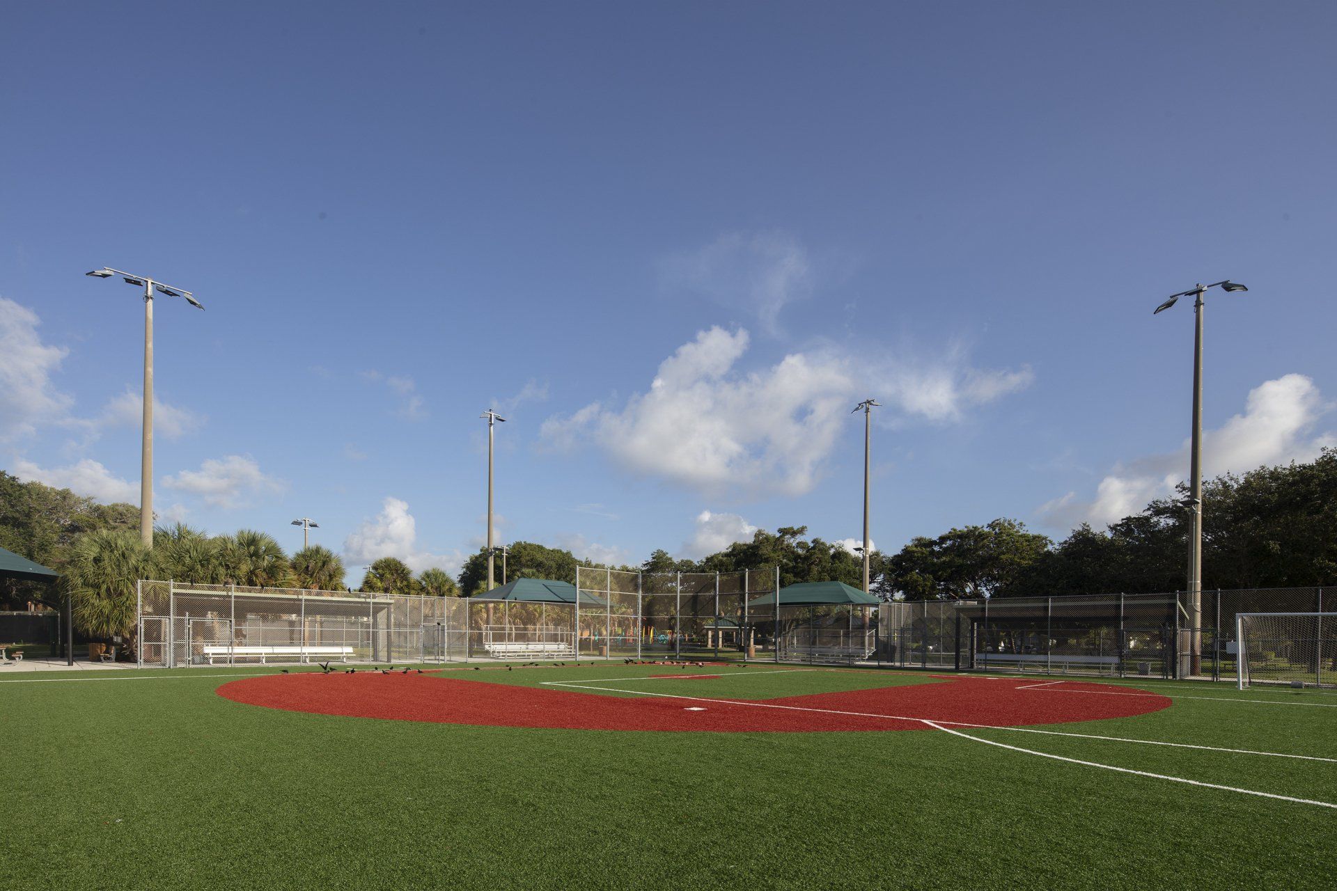 Serving as the Construction Manager at Risk for the City of Boca Raton, Burkhardt Construction, Inc. successfully completed the Sand Pine Park Renovation and Improvements in June 2022. The 8.5 acre project included removal and construction of a new basketball court and the resurfacing of existing tennis and racquetball courts. Retractable sports netting was installed. Two artificial turf fields were removed and resurfaced. Old playground equipment was removed and replaced with a new playground, shade structures and fitness equipment. The existing restroom building was demolished before new restroom and pavilion buildings were constructed. These park improvements also included the installation of new Musco Sportslighting for the basketball, racquetball and tennis courts along with the turf fields. The Sand Pine Park Improvements project was completed under budget and ahead of schedule.