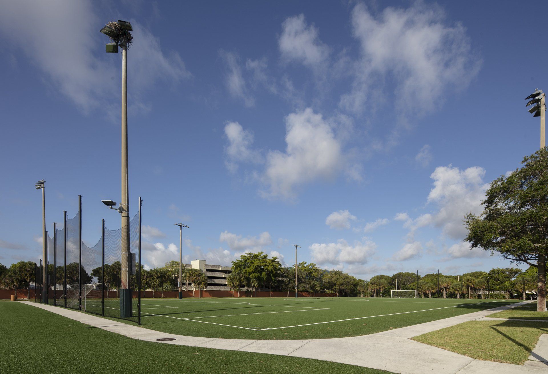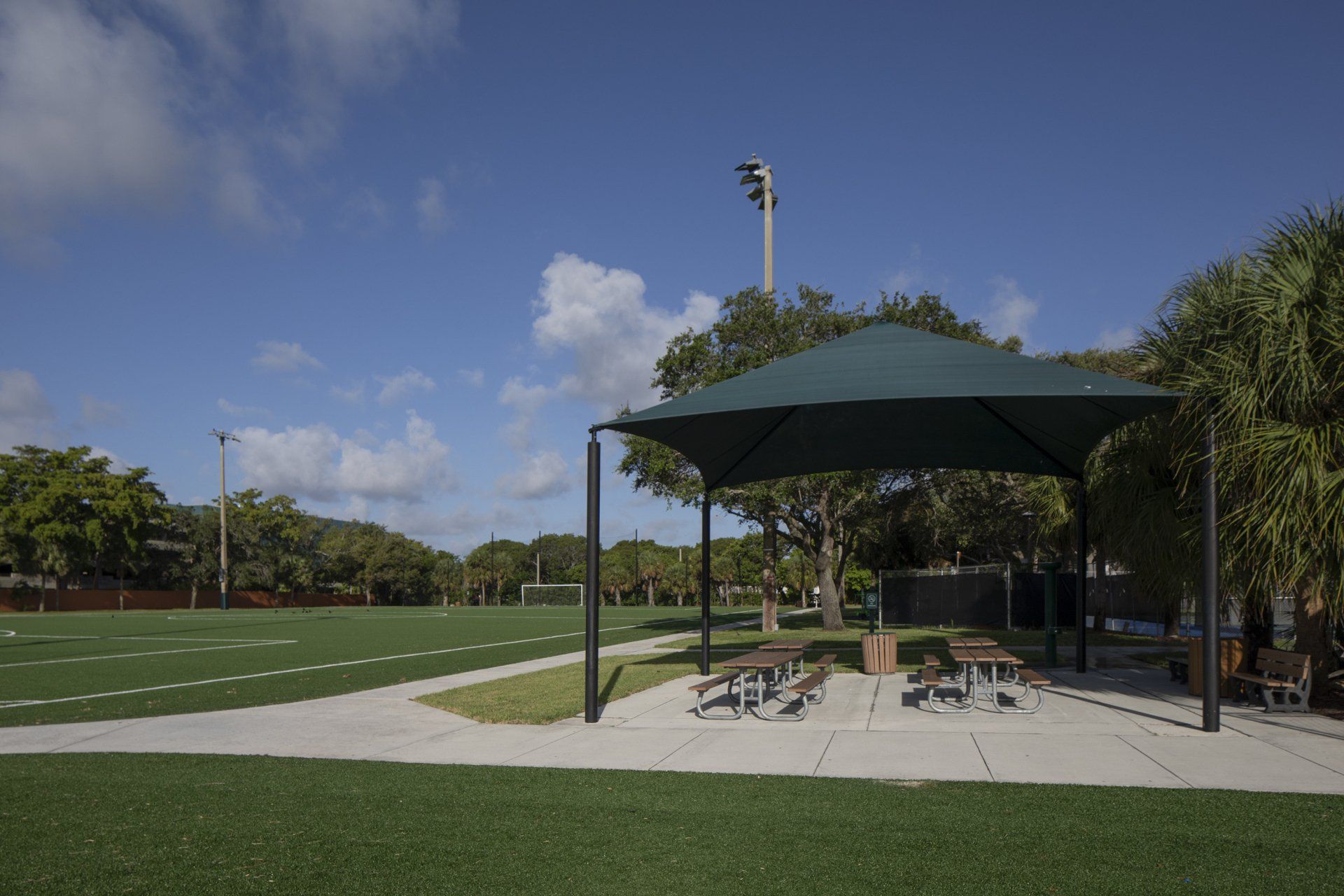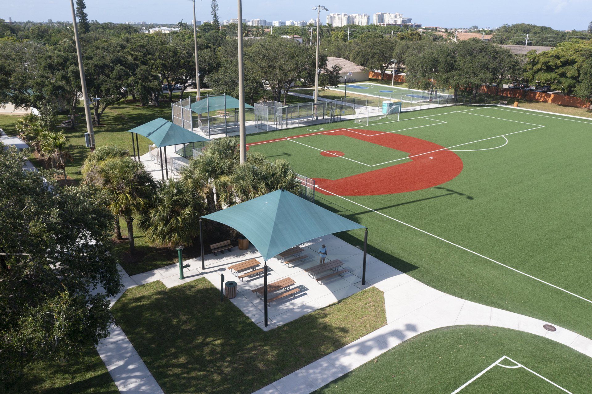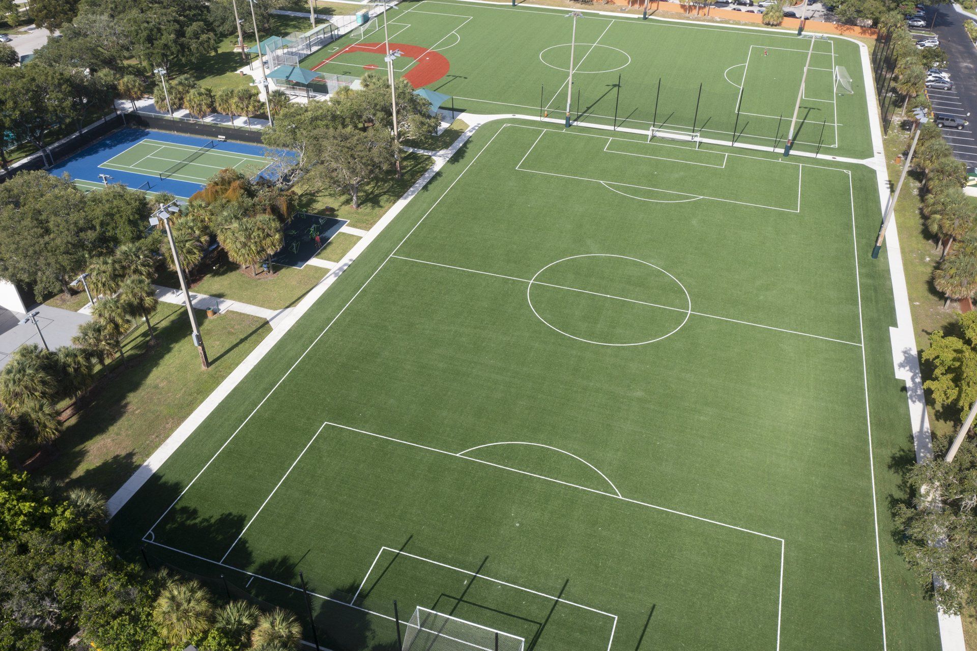 Serving as the Construction Manager at Risk for the City of Boca Raton, Burkhardt Construction, Inc. successfully completed the Sand Pine Park Renovation and Improvements in June 2022. The 8.5 acre project included removal and construction of a new basketball court and the resurfacing of existing tennis and racquetball courts. Retractable sports netting was installed. Two artificial turf fields were removed and resurfaced. Old playground equipment was removed and replaced with a new playground, shade structures and fitness equipment. The existing restroom building was demolished before new restroom and pavilion buildings were constructed. These park improvements also included the installation of new Musco Sportslighting for the basketball, racquetball and tennis courts along with the turf fields. The Sand Pine Park Improvements project was completed under budget and ahead of schedule.