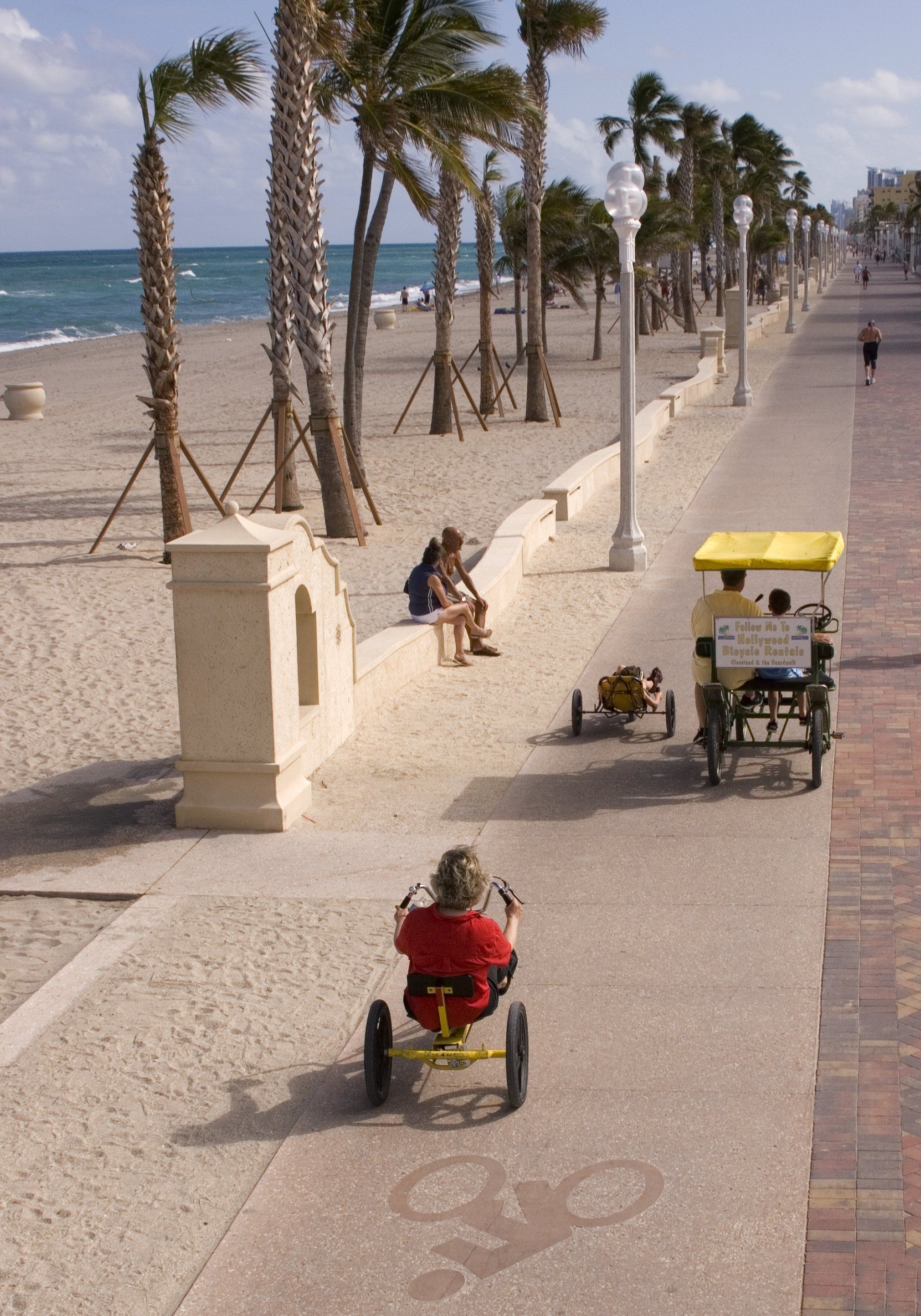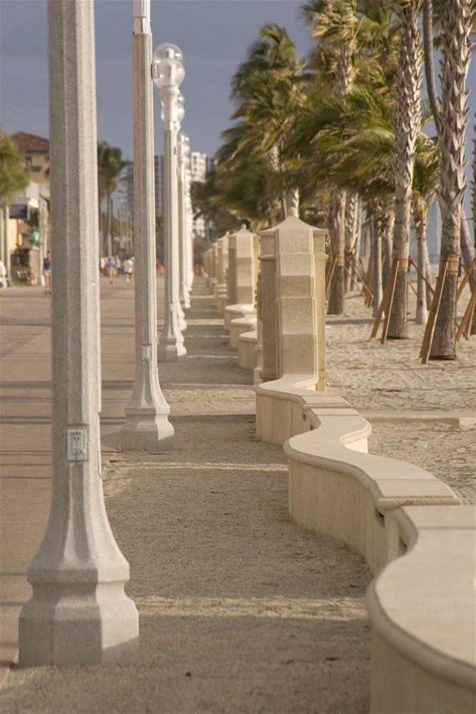 This project was part of a successful effort by the Hollywood Beach Community Redevelopment Agency to restore Hollywood’s pedestrian-only ocean-front promenade “The Broadwalk” to its glory days of the past. The improvements were designed to recreate the charming beachside village feel the area had after it was built in 1923. The revamped Broadwalk includes brick pavers in the pedestrian area, a crushed shell jogging path and a tabby concrete bike path. It also includes historically-themed lighting fixtures and an 18-inch decorative wall designed to keep the beach sand off the pedestrian areas.