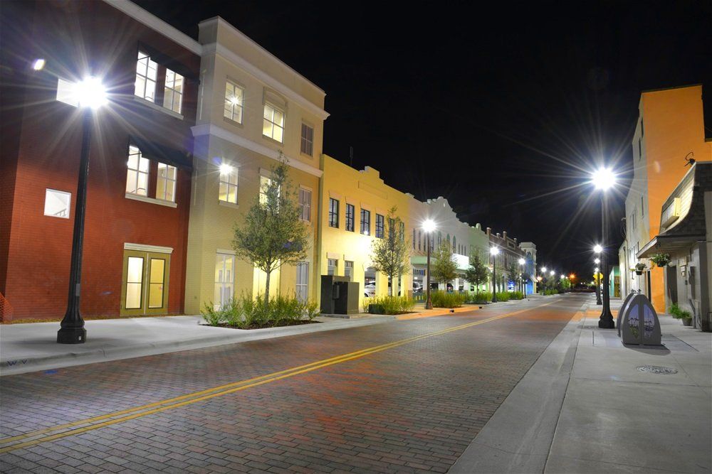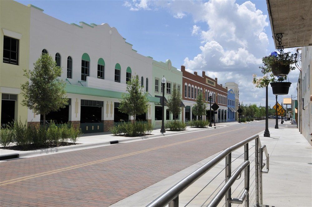 Burkhardt Construction worked with the City of Kissimmee and the Kissimmee Utility Authority (KUA) to design and build utility and streetscape improvements on Pleasant Street and Darlington Avenue. The streets bordered the privately developed Toho Square Redevelopment on two sides. The design/pre-construction phase included coordination with the City, various utilities and Toho Square's developer to design temporary and permanent utilities. We then worked with KUA to temporarily relocate existing powerlines to the opposite side of the street to accommodate the development. During the main construction phase we relocated and improved water, sanitary sewer, and drainage lines and installed conduit and transformer pads for new, permanent underground power lines and other utilities. As part of the streetscape beautification, we installed brick roadways, concrete sidewalks with brick banding, landscaping and irrigation. This project was delivered on time and on budget.